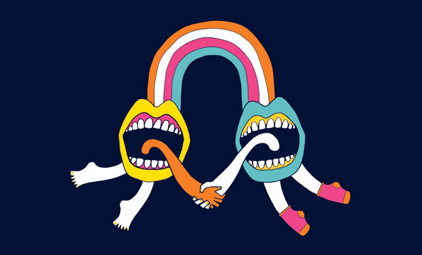 Proposed design for 2K T-shirts. Psychedelic mouths who's tongues turn into hands. Pleased to meet you sir!
