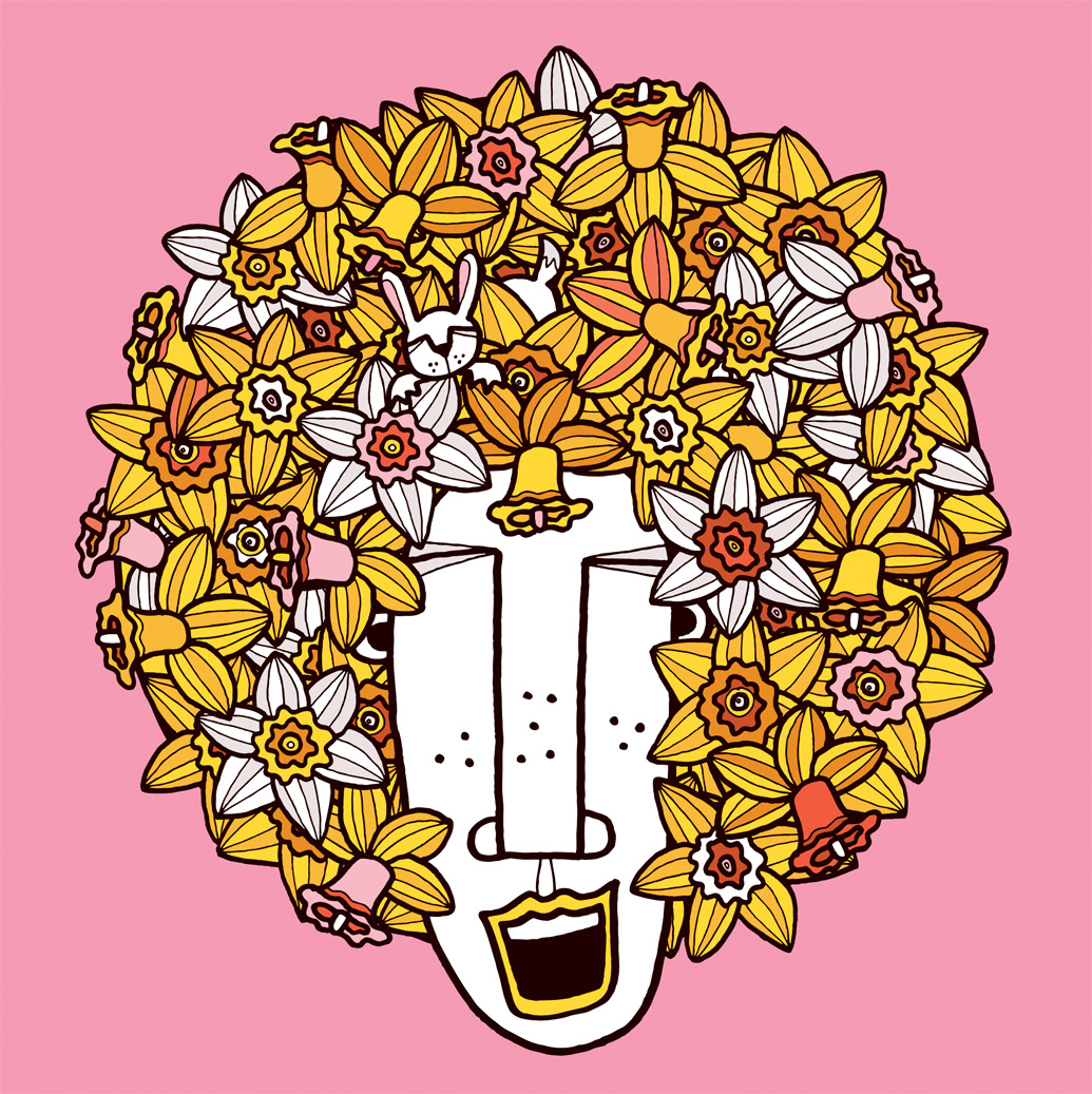 Self initiated illustration on the theme of spring. The character adorning an afro of daffodils reminiscent of one of the drag queens outfits from Priscilla Queen of the Desert!